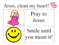 Laundry Room Consequence: (This idea came from a good friend of mine!) I made a small sign that has a picture of a child praying, and a smiley face and put it on the wall in our laundry room. Before implementing this consequence, take your kids into the laundry room and show them your sign. Discuss how things go in there dirty, and come out clean. When we sin, our hearts are dirty and need to be cleaned. The solution is to pray to Jesus, confess our sin to Him and ask Him to clean our hearts. We practice this. Then we look at the smiley face and say that they need to smile until they mean it. When they are done with those 2 things they may come out of the Landry room and come show you their clean heart and new smile!