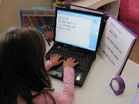 6. Typing: while, I was skeptical about the typing thing with a 6 year old, so I’ve just been putting the card in her boxes randomly for fun, she likes it. I explained to her how to do it, look at the keyboard on the left of the screen to find a letter if she doesn’t know where it is, and look at the sample on the right and copy it trying not to look at her fingers. Today I sat with her to see how she did, and I was very impressed, her hands are small so she has to take her right hand off the keyboard to press the ‘enter’ button but otherwise, she actually typed the entire first page without looking at her fingers!