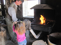 Next we went to see the blacksmith, everyone got a turn pumping the fire and we learned how to make a J hook.