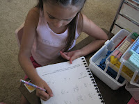 1. MUS Video and worksheet. This was a difficult concept today, we are learning to ‘carry the one’. They also have her split it out so if the number is 84, she has to write 80+4. These are 2 difficult things to do all at once, but we’re gonna take our time and get through it.