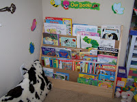 Last, but not least, our reading area, some soft pillows and fun books, mostly readers that my 2nd grader can read on her own or to the others.