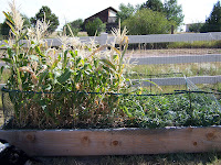Here are some photos of our garden, we planted 2 10’x4′ beds this year, and are adding a 3rd bed for next year since our plants were way too crowded! This one has corn, watermelon and cantaloupe.
