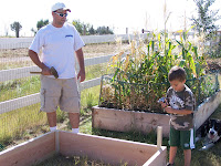 Here’s the men making another bed to prepare for next year. My son loves anything that involves shovels, hammers, or drills. So here he blazed outside eagerly to help Daddy do ‘man stuff’. On his way out the door he said: “I gotta go work, can you bring us some water, it looks hot out there.”