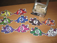 Dino Clip Cards/Counters: I use these with either mini-clothes pins, colored paper clips, or put a hole in them and have her attach chain links to them. Whatever you use, just have them put on the correct amount for the number on the card. These are also good for having them put in numerical order. I also made the odd numbers face left and the even’s face right if you dare to go there in prek! LOL!