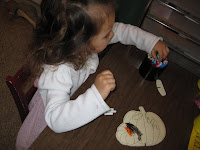 Our counting game, you can download it here. I was pleased to see that she recognized what a seven was, and even counted that high, although after we got 7 pumpkins on the chart, she insisted on putting all the rest of them on too.