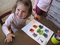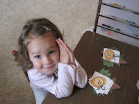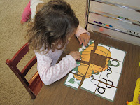 Yippee, she loves the pumpkins! This 9 piece puzzle was a little harder than expected, she needed help, but eventually got it. You can download it here.