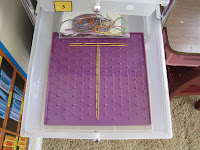 Geoboard making the letter T and t, I’ll probably have her do the number 10 also.