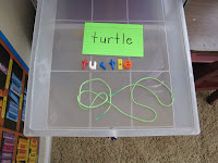 Trying something new here, lacing the letters t – u – r – t- l – e onto a string…