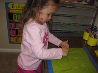 We’re starting off our Letter T day with a paint bag. Fill a ziplock paint bag with paint and let them draw the letters with their finger. You could also fill it with cheap shaving cream, and if you’re feeling really brave, just spread the shaving cream out on your counter and let them have at it! (Notice how mine is in a sealed bag!)