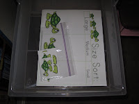 4. Turtle Size Sort: she matches the Large, Medium, and Small turtles to the correct spot on the board. She’s got the hang of these ‘sizes’ now, so our next letter will be an activity to put them in the correct size order from smallest to biggest or visa versa.