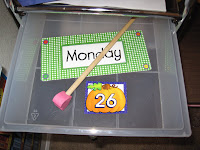 1. Calendar activity time: She is in charge of counting the calendar, putting up the next date number and day of the week. We discuss yesterday/tomorrow at this time as well. The pointer is to count the calendar numbers, its always more fun with a pointer! I just realized looking at this picture that I forgot to include her colored chain. We also use our calendar for patterning, so each day we put up a chain piece on a thumb tack that I put in the calendar next to each number. So we do like: red, blue, red, blue, red…etc.