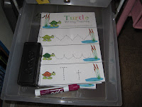 2. Number of the week coloring page: We do 1 number a week, I downloaded this from KidZone. She has a cup full of crayons that stays on her desk, otherwise I would have put them in the box!
