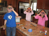 We have been reading our Birds, Nests & Eggs book this week, so we decided to make some binoculars. You know, to aid in our ‘winter-time’ bird watching…maybe more of a summer activity! LOL! Oh well…like I said, this was ‘on the fly’. (No pun intended!)