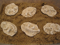 Dino Dig: I made these ‘fossils’ out of Plaster Of Paris. Its only $2.50 for a HUGE bag from Wal-mart. I put wet sand in a plastic dish and smoothed it out. Then used one of our little plastic dinosaurs to push an impression into the sand. After all the ‘molds’ were ready, I made up the plaster of paris and poured it into the sand carefully. Let it set until hard then dusted off our ‘fossils’. Then I hid them in our sandbox and let the kids do a ‘Dino Dig’!