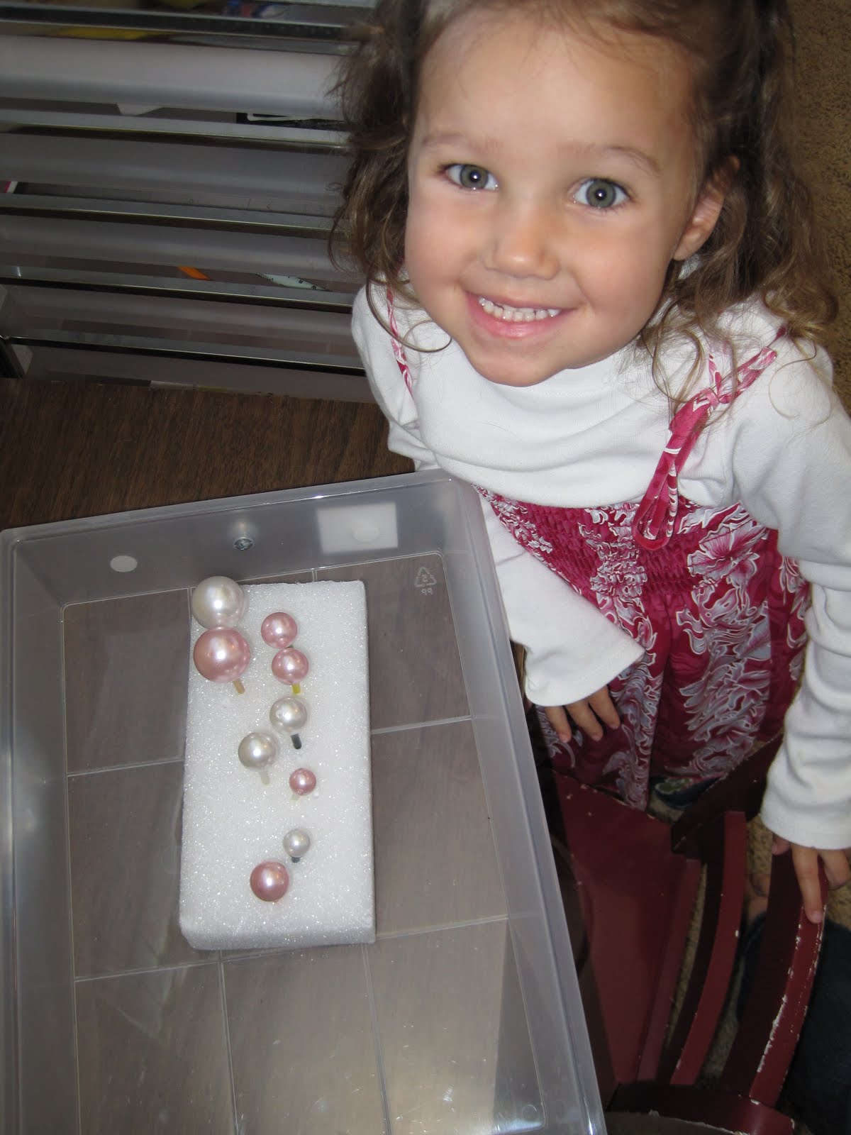 Marbles and Golf Tee Motorskills! I’ve seen this on several blogs, but most recently on Pink and Green Mama. It looked right up our alley, so I tried it today! It was such a hit that everyone had to have a turn, thanks Pink and Green Mama!