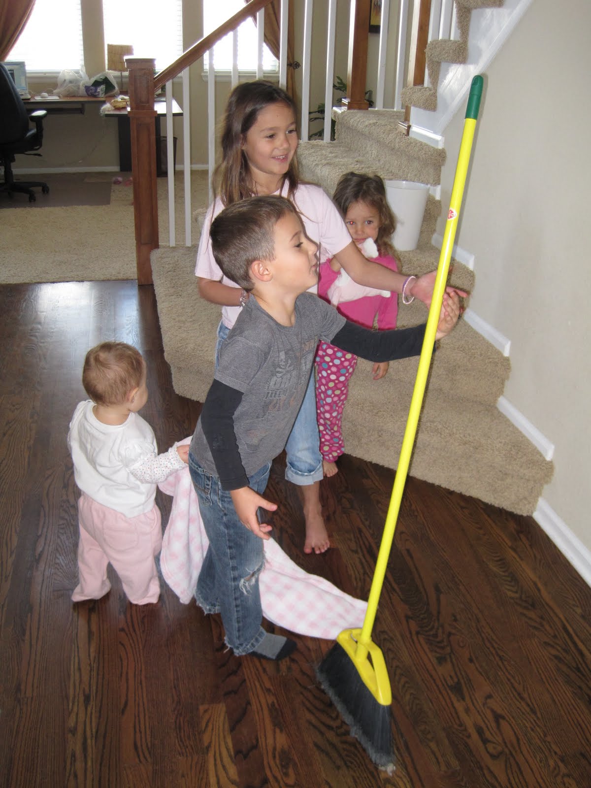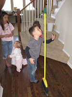 I found this on Pink & Green Mama Blog and had to try it. At first I felt like a dork wasting my time trying to stand up a broom in my hallway, until….drum roll please….it worked!
