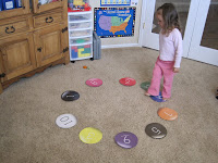 M&M; Floor Numbers, hoping to the correct number! We also clapped the correct amount of times once she hopped to the number. Click here to download large m&m; floor numbers!