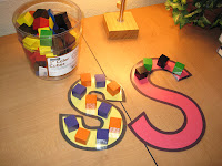 Foam Letter Builders: I cut the shapes from foam and let her use them to make the letters. You could also use my Magnetic Letter Builders as well!