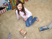 Then, being a good sport, my daughter had her own ideas for the blocks and made a nifty little log house for her dolls.