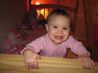 oh she is just the cutest thing!! My little one is almost 16 months and she wants to do EVERYTHING big sister does… she isn't doing this much climbing yet… maybe I'll get lucky and she won't! LOL