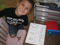 A Place Value Game: Pick numbers and put them in boxes, say the number, and make it with blocks! Click here to download the Place Value Game: