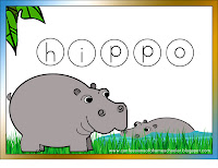 Hippo Cut & Paste: A new activity we are trying, cut out the hippo and glue onto construction paper, or better yet, paint a background!