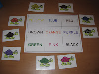 Turtle Color Matching: The color puzzles were too easy for her, so I’m going to try something new, word matching. She can’t read yet, but I made the words the correct color, so I’m hoping she’ll start to recognize them as she practices. Put the correct color turtle on the square with the word on it…If you’re not ready for that, you could always just print page 2 of this document, and cut the turtles in half for a color matching game as well…You can download it here!
