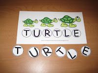 Turtle Lacing card: Print on cardstock and laminate, then hole punch every 1″ or so. Using yarn or a shoelace, have students practice lacing the card.