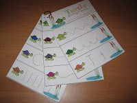 Turtle counting: Tip: To save on lamination (if you have a Xyron, and use sticky laminate instead of heat laminate) you can put 2 pages back to back and laminate. When you cut them apart the lamination is on the front, but not on the back, but who cares eh? You can download the turtle counting game here! If your looking for more than matching, you can have them write the numbers in the blank spaces too if you laminate!