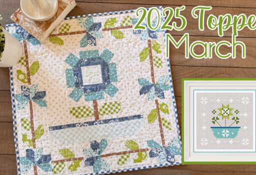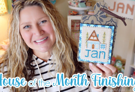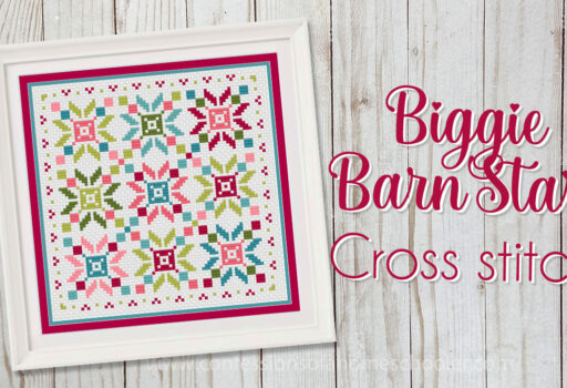 The sample is stitched on 14-count white Aida cloth with 2 strands of DMC floss. If you stitch with the recommended fabric, the finished piece will be approximately 3″w x 3.5″h.