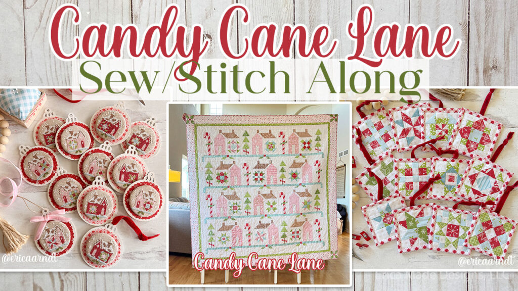 For the SAL, you can make anything from the Candy Cane line! That includes the full sized quilt, stitchy ornaments (or whole cloth version), and the CCL Ornaments too! Make sure to post your progress pics in our Sew With Me Facebook Group ! And that’s it! Have fun sewing and stitching along!