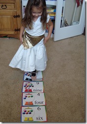 Gumball Floor Numbers: I made these large floor numbers so that we can play a hopscotch type game. I call out a number and she jumps to it! You could also have them put the cards in numerical order.