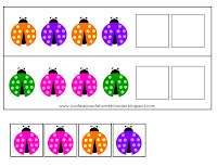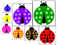 Ladybug Counting Puzzles: You can do a couple of things with this one, you could cut the lady bugs down the center and have them count the dots and match them to the correct number. You can also use them as clip cards and have them put the correct number of clothes pins, or paper clips on them as well. We put the correct number of glass beads on each ladybug.