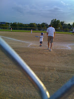 Tonight was my son’s very first ever t-ball game, he did excellent, got right in the game, hit the ball on the first try, and even ran to all his bases and scored 3 runs. Now, everyone scores 3 runs in the 5yr old t-ball league, but still he was pretty excited that he didn’t get struck out since his Daddy strikes him out when they’re practicing. He even got a bottle of gatorade afterwards which was probably just as exciting to him as the game, not to mention a sweet t-shirt and new baseball hat. He’s a HUGE fan of hats!