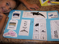 Our completed Lapbooks from last week (most of them were printed from http://www.homeschoolshare.com/, the dolphin/whales one came from here.