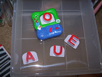 LeapFrog Fridge Phonics: I’m only putting in vowels that we’ve covered thus far. Each day we work on the ‘sounds’ that the vowels are making, and this was a fun way to remember phonics.
